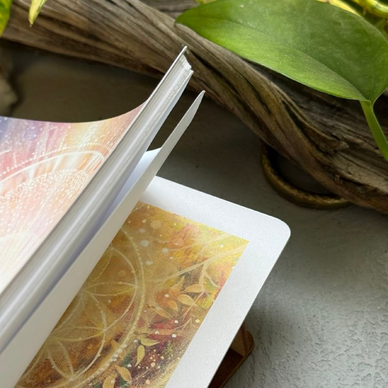 Ещё он творческий, наполнен моими картинами откликающимися светом и теплом в сердце и целительными словами Оксаны, которые касаются самих струн души.